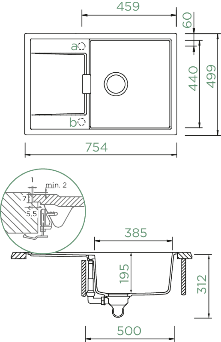 | Breite Hauptbecken in mm: | 440 | |