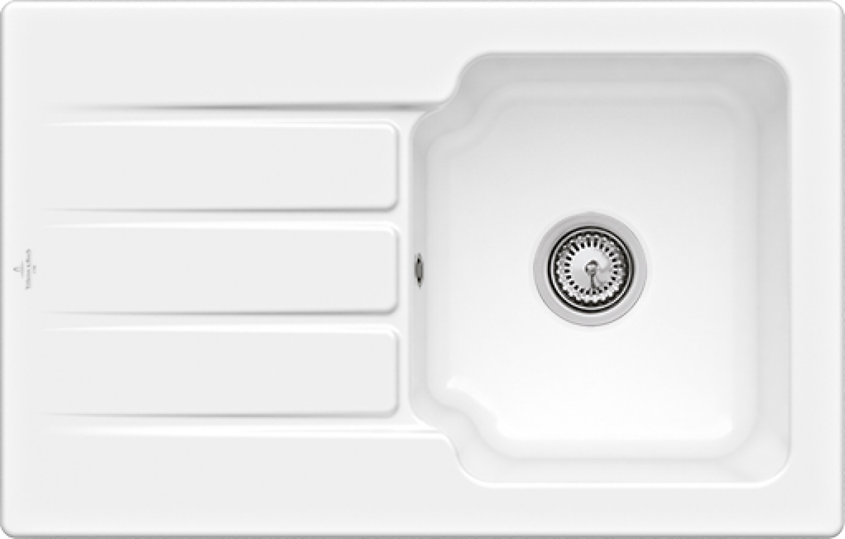 - Villeroy & Boch Architectura 45 Einbauspüle, inklusive Ablaufgarnitur mit Handbetätigung, aus Keramik, 800 x 510 mm, Weiß Alpin CeramicPlus