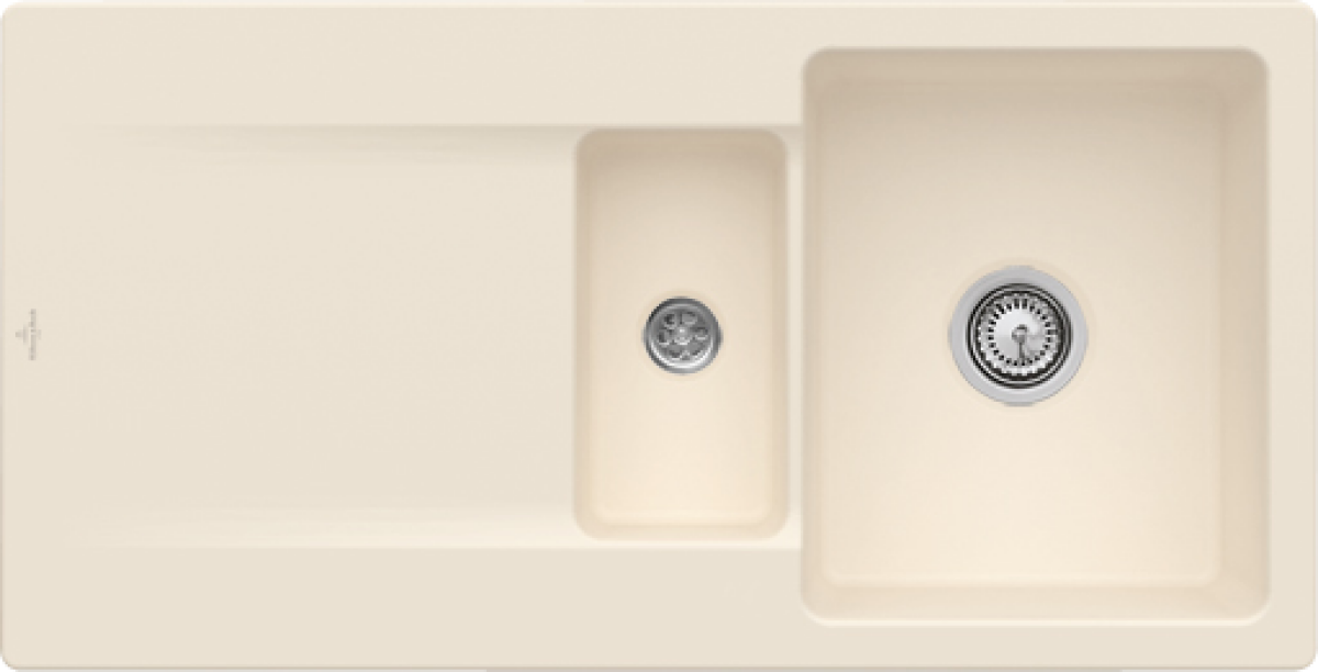 - Villeroy & Boch Siluet 60 R flat flächenbündige Spüle, inklusive Ablaufgarnitur mit Excenterbetätigung, aus TitanCeram, 980 x 490 mm, Ivory CeramicPlus