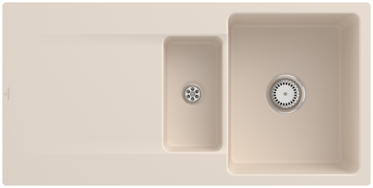 - Villeroy & Boch Siluet 60 R flat flächenbündige Spüle, inklusive Ablaufgarnitur mit Excenterbetätigung, aus TitanCeram, 980 x 490 mm, Ivory CeramicPlus