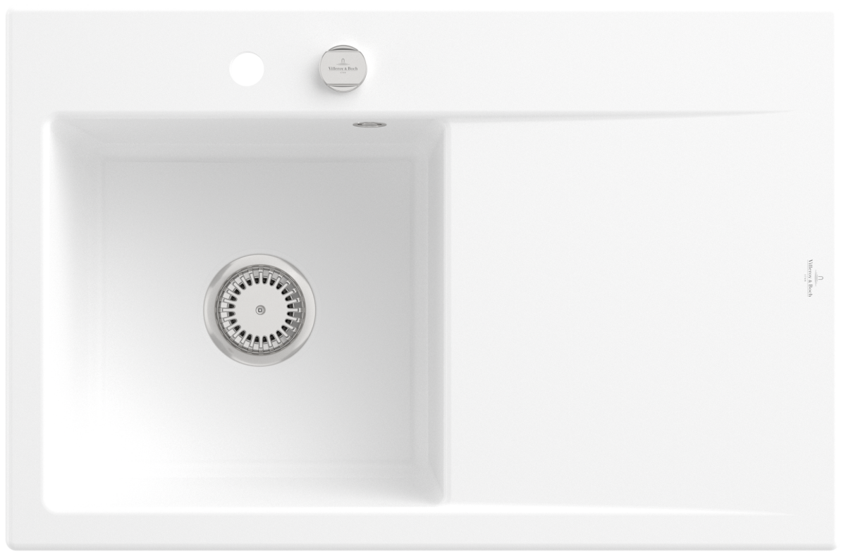 - Villeroy & Boch Subway Style 45 Einbauspüle, inklusive Ablaufgarnitur mit Excenterbetätigung, aus Keramik, 780 x 510 mm, Stone White CeramicPlus