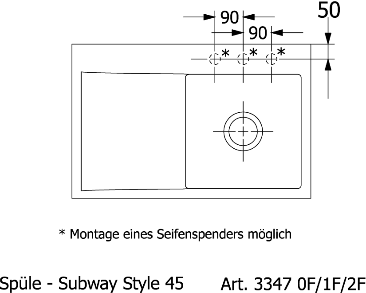 | Hahnlochbohrung: | Ohne Hahnlochbohrung - Spülbecken rechts |