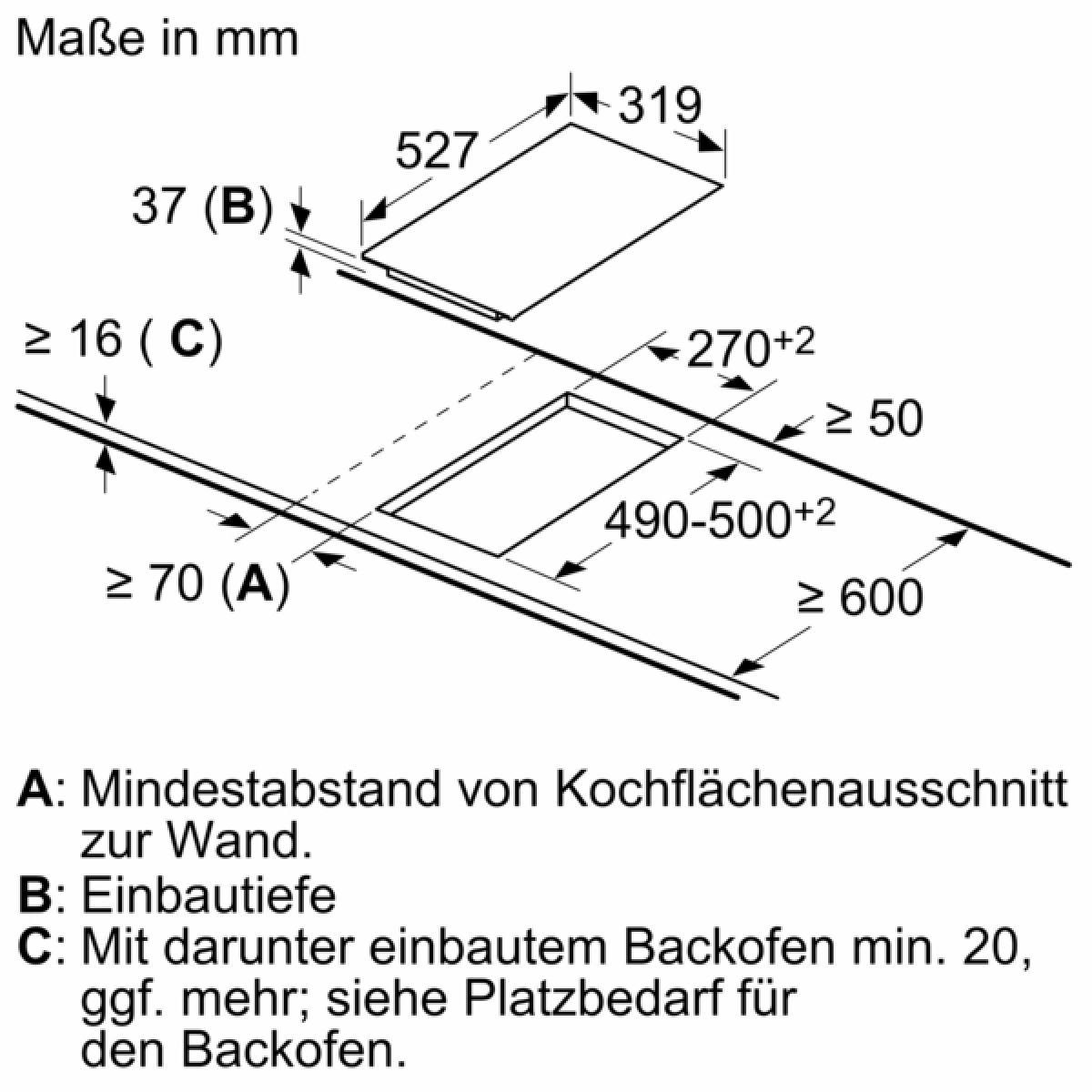 Abmessungen der Kochzone