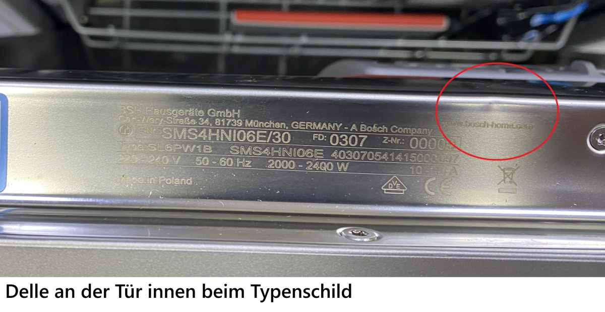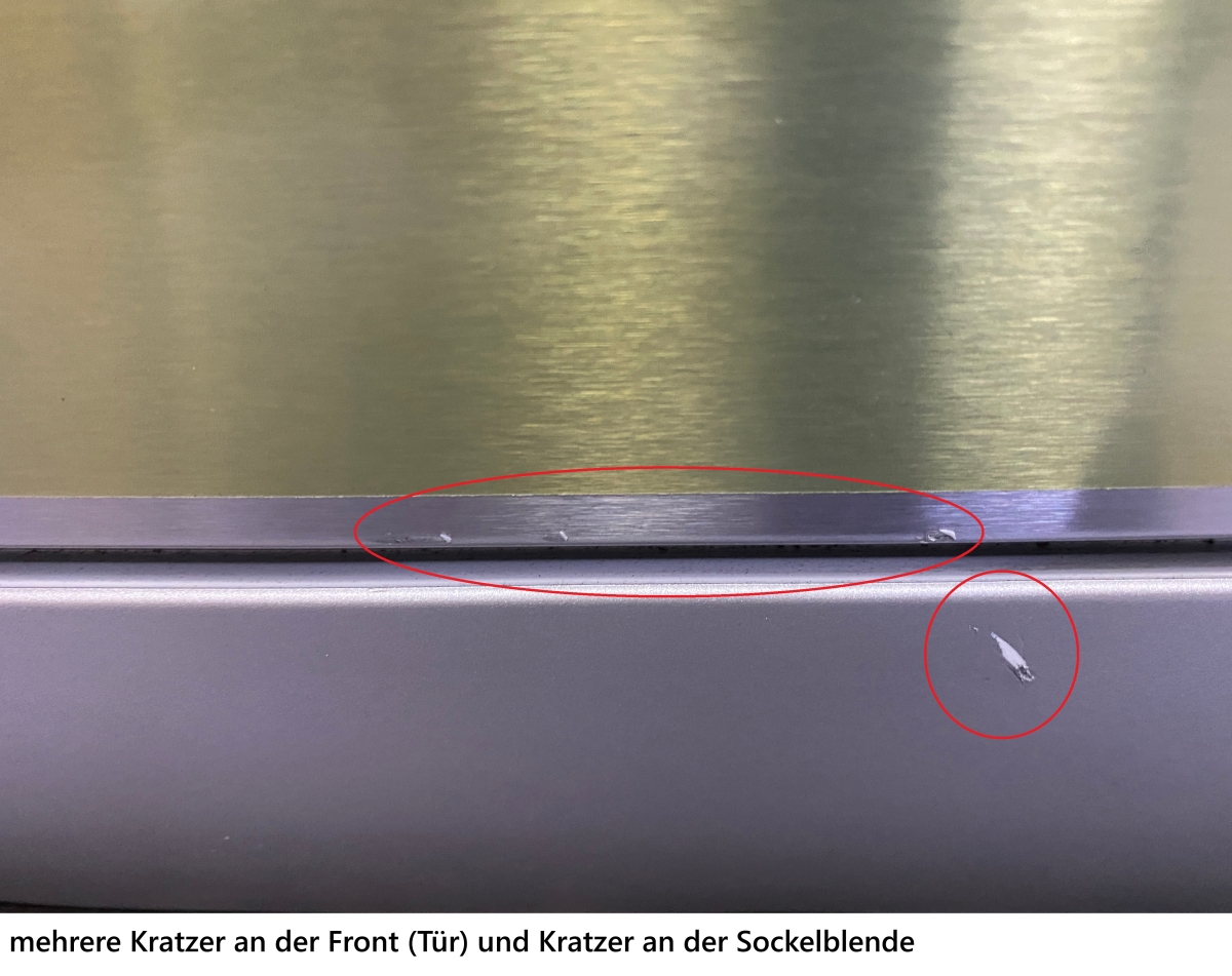 Front: - 3 kleine Kratzer an der Türkante unten - Kratzer an der Sockelblende