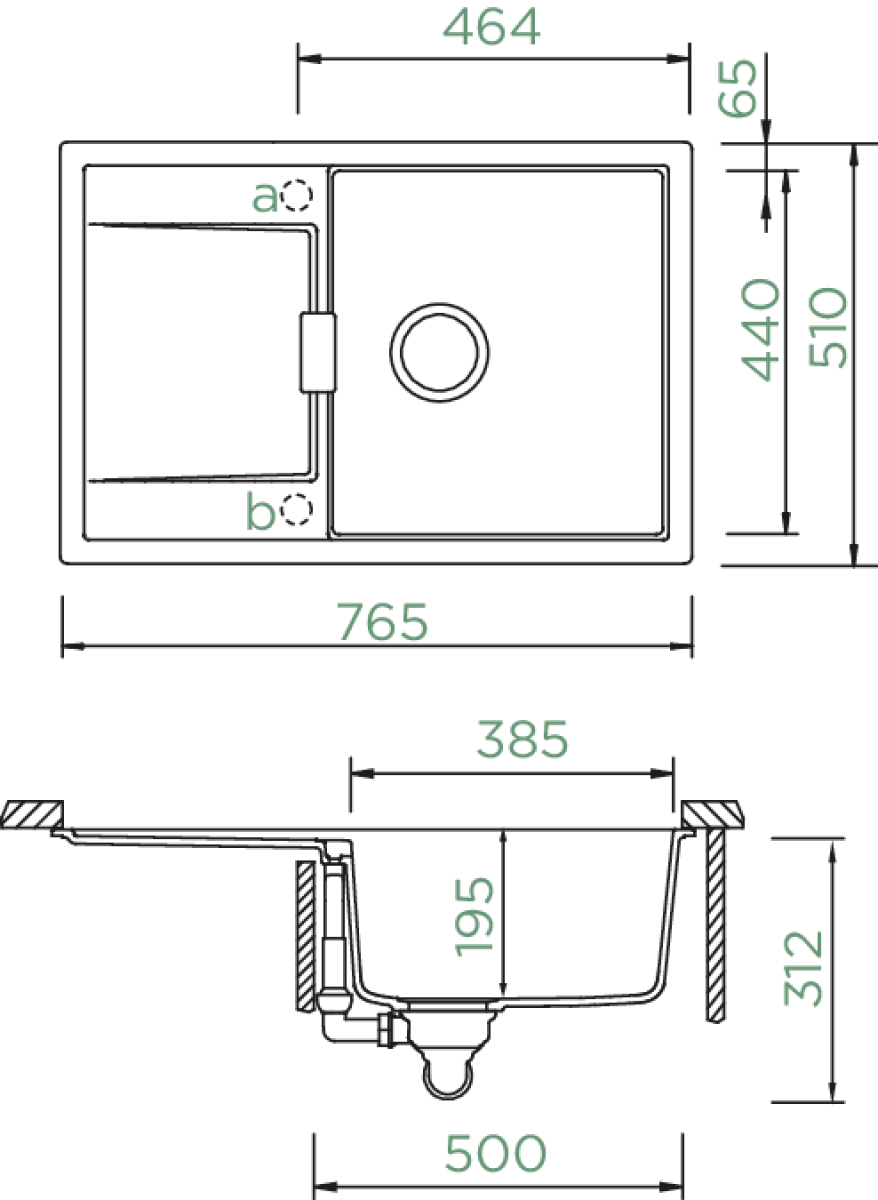| Spülenform: | Einbeckenspüle mit Abtropffläche | |