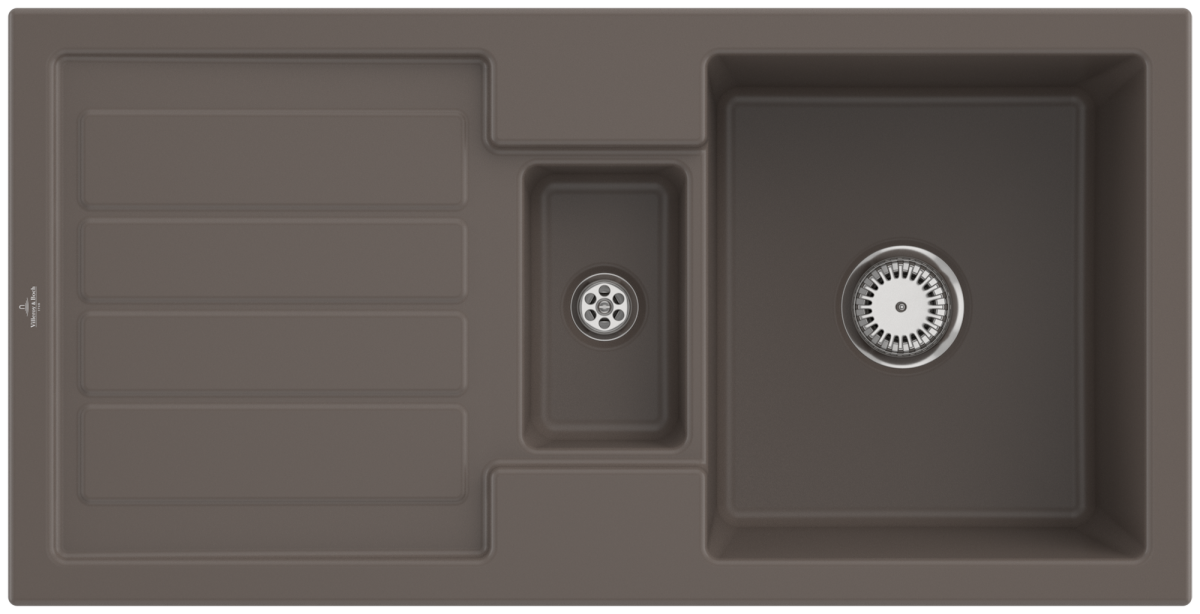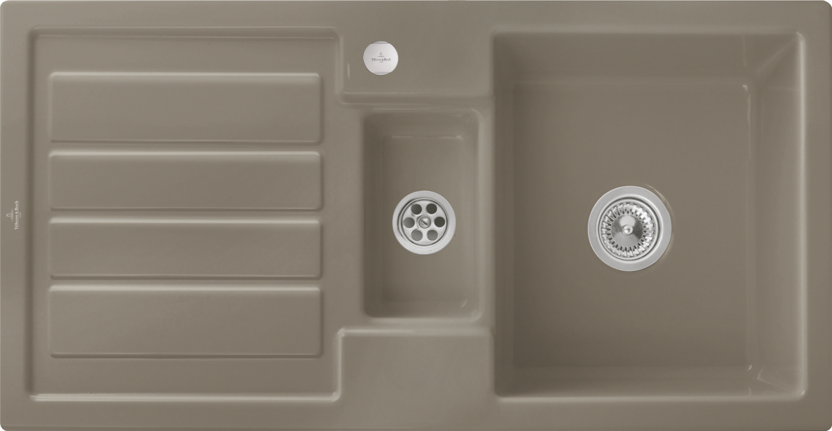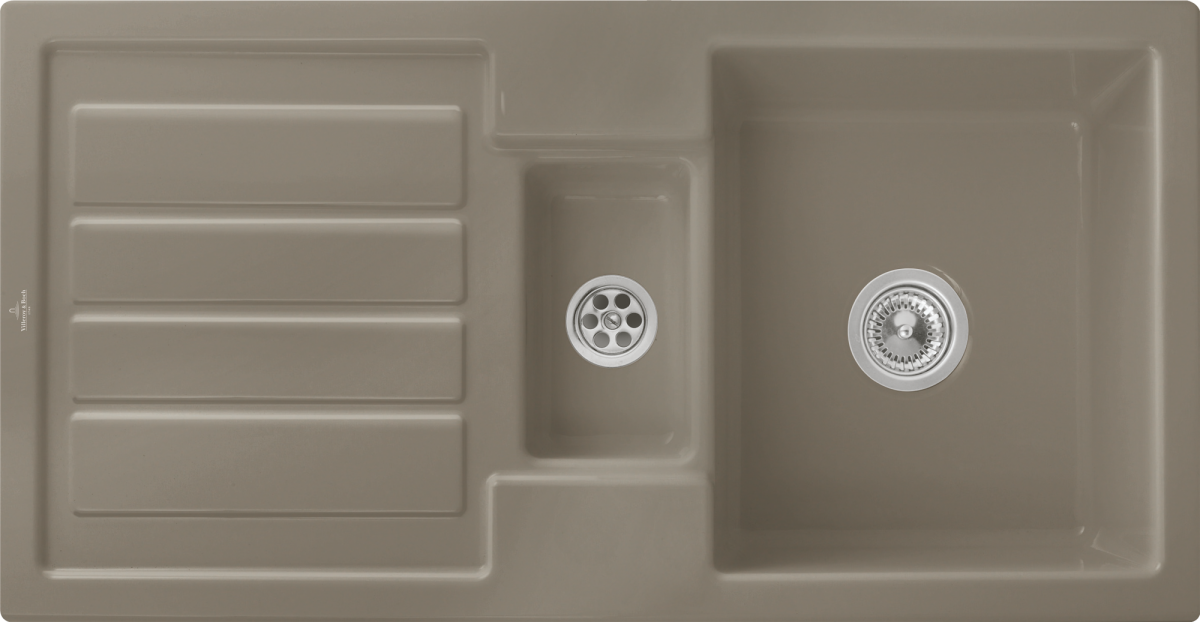 - Villeroy & Boch Flavia 60 Einbauspüle, inklusive Ablaufgarnitur mit Excenterbetätigung, aus Keramik, 1010 x 510 mm, Timber CeramicPlus
