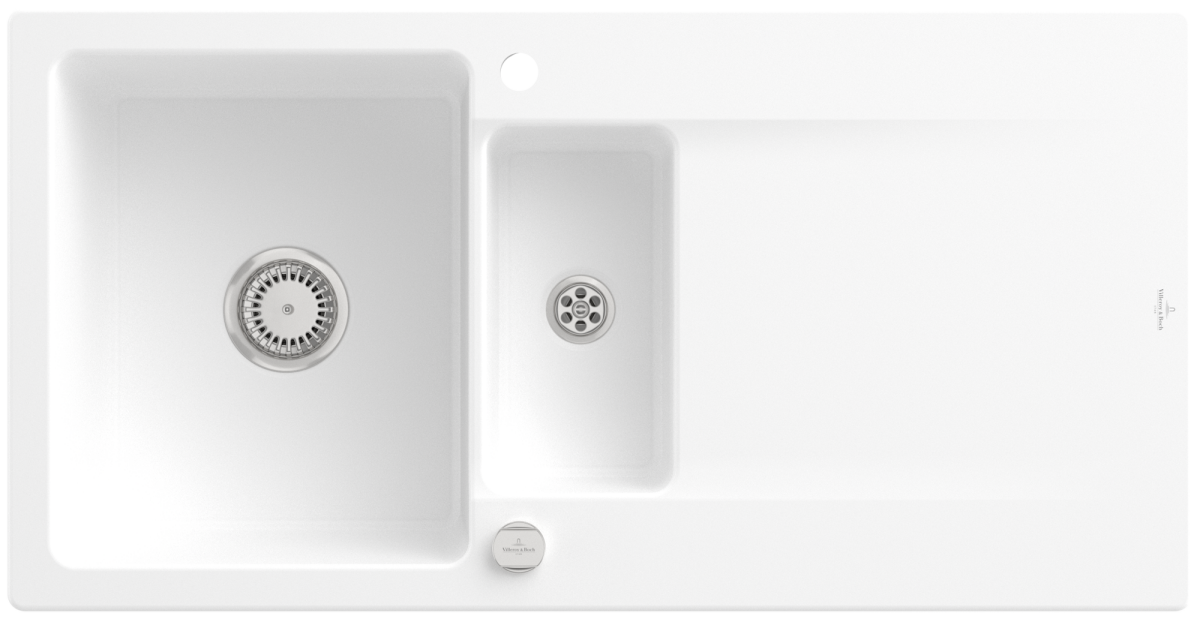 - Villeroy & Boch Siluet 60 R Einbauspüle, inklusive Ablaufgarnitur mit Excenterbetätigung, aus TitanCeram, 1000 x 510 mm, Stone White CeramicPlus