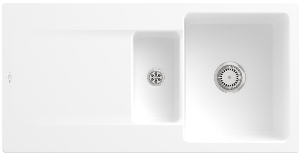 - Villeroy & Boch Siluet 60 R Einbauspüle, inklusive Ablaufgarnitur mit Excenterbetätigung, aus TitanCeram, 1000 x 510 mm, Stone White CeramicPlus