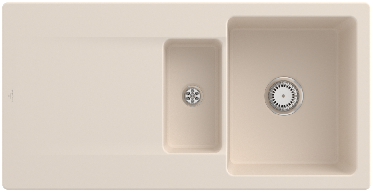 - Villeroy & Boch Siluet 60 R Einbauspüle, inklusive Ablaufgarnitur mit Excenterbetätigung, aus TitanCeram, 1000 x 510 mm, Ivory CeramicPlus