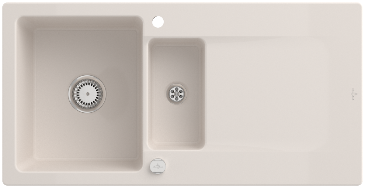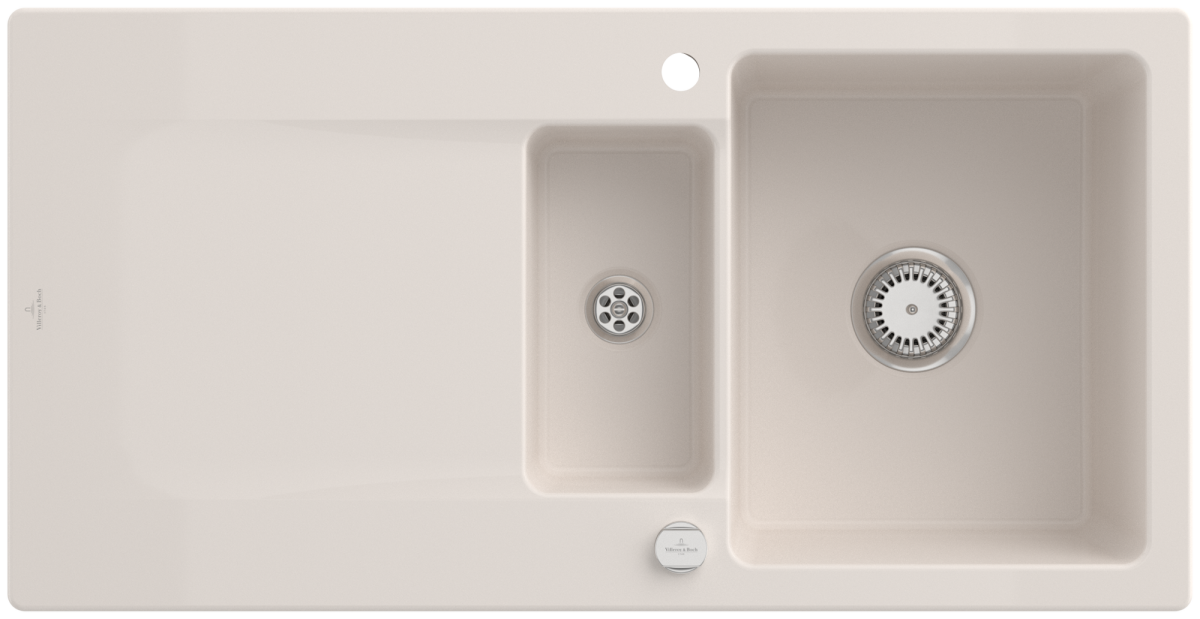 - Villeroy & Boch Siluet 60 R Einbauspüle, inklusive Ablaufgarnitur mit Excenterbetätigung, aus TitanCeram, 1000 x 510 mm, Crema CeramicPlus