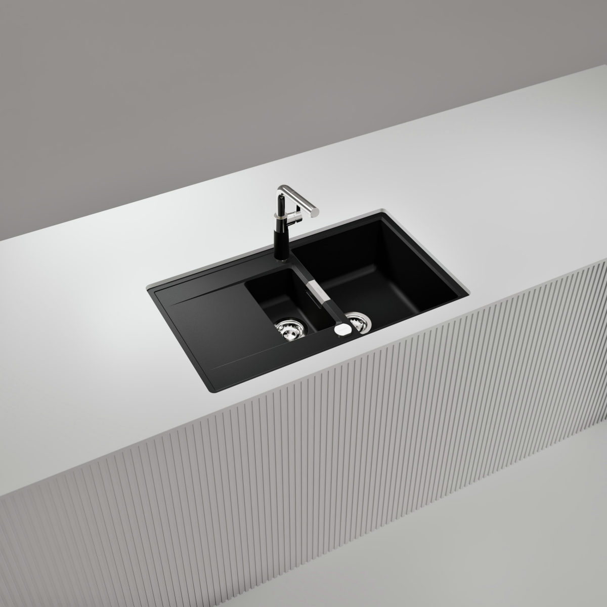 - Spülenform: Eineinhalbbeckenspüle mit Abtropffläche